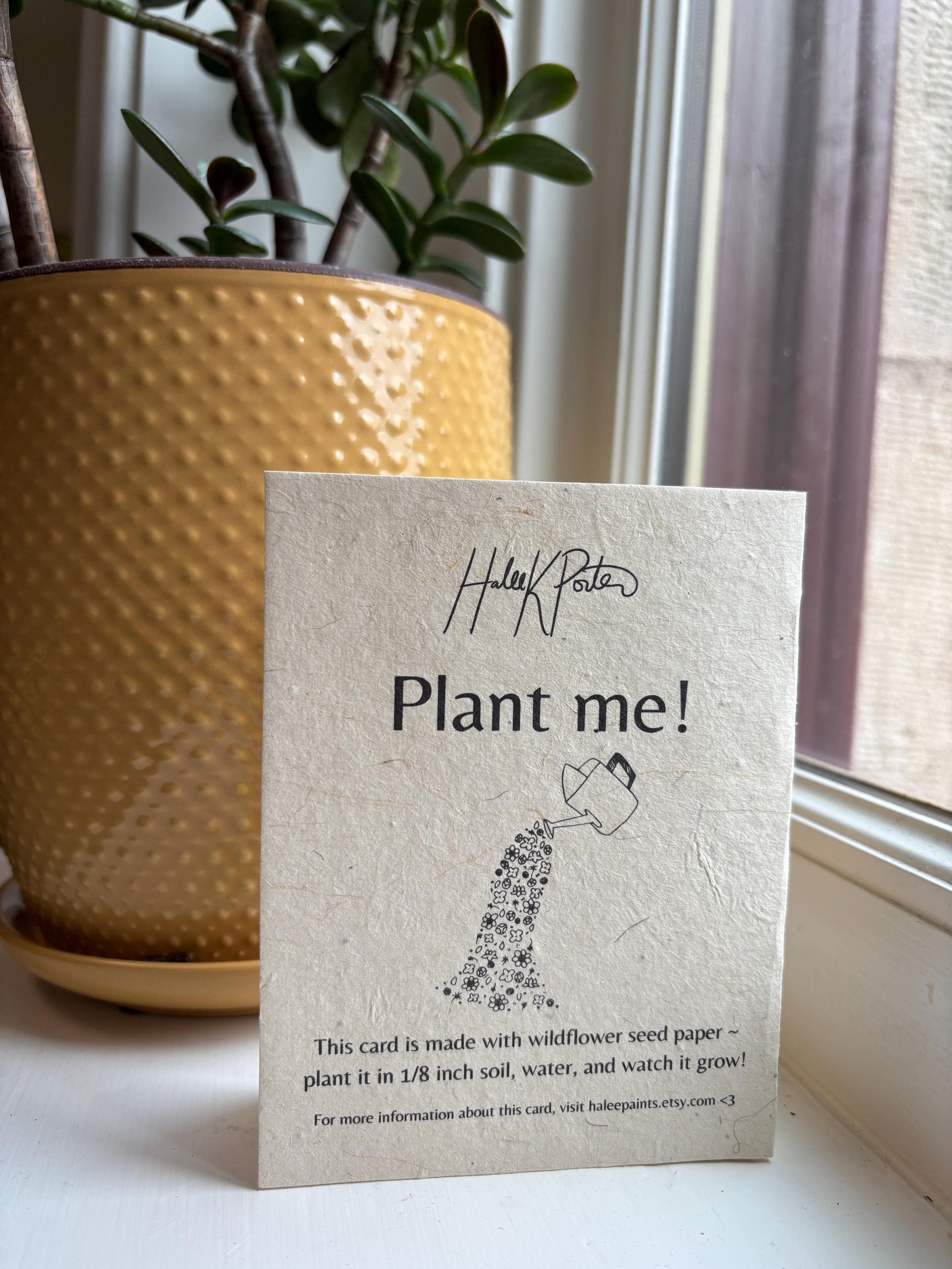 Send a card that keeps on giving! This set of hand-painted greeting cards features a charming goat with a bright sunflower, printed on eco-friendly handmade seed paper. After your message is read, the card can be planted to grow a mix of beautiful wildflowers.